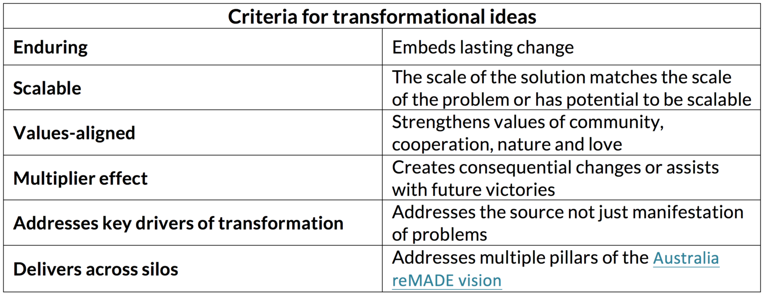 Criteria for assessing the transformational capacity of Big Ideas